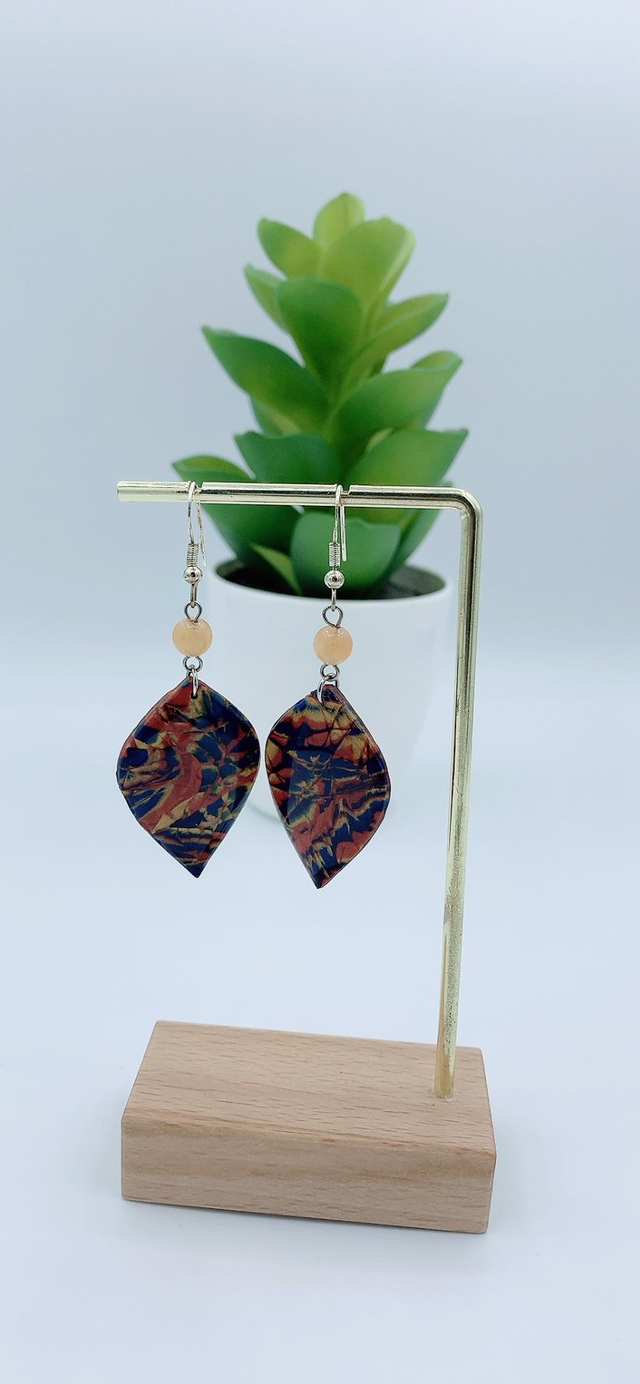 Ces boucles d'oreilles sont fabriquées en Argile Polymère, un matériau léger et durable qui permet une grande variété de designs et de couleurs. Chaque paire est soigneusement façonnée à la main , peinte ou teintée avec soin, offrant ainsi un aspect unique et artistique. Pour la finition, une couche de résine est appliquée afin de garantir la vivacité des couleurs et de protéger la création.