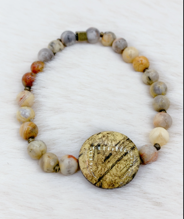 Les nuances délicates de l'Argile polymère se marient harmonieusement avec les éclats scintillants de Jaspe Brun.