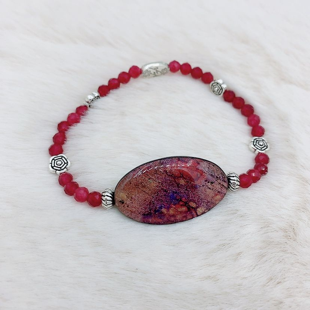 Découvrez ce magnifique bracelet élaboré avec soin dans mon atelier, alliant l'élégance de l'Argile Polymère et la transparence de la résine. Ce bijou unique se distingue par sa partie centrale, soigneusement façonnée et peinte à la main, offrant une touche d'originalité et d'artisanat.