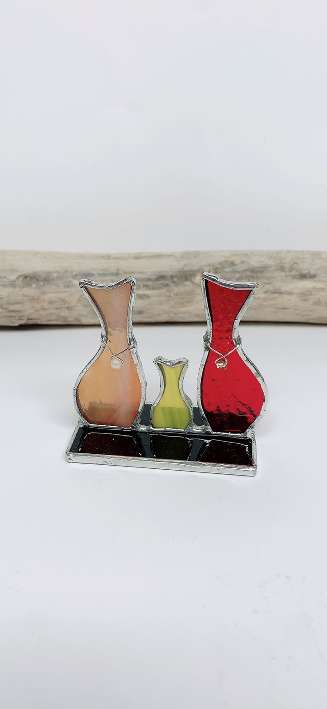 Ajoutez une touche de poésie et de lumière à votre espace avec notre Famille de chats en verre de vitrail. Chaque pièce raconte une histoire et illuminera votre quotidien.