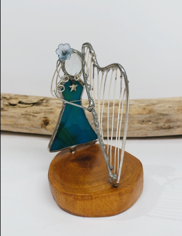Ajoutez une touche d'élégance artistique à votre intérieur avec notre personnage en vitrail. Réalisé avec soin, cette réalisation combine des morceaux de verre aux couleurs vibrantes , du fils de cuivre argenté et de l'éteins, créant ainsi une œuvre d'art unique et lumineuse.